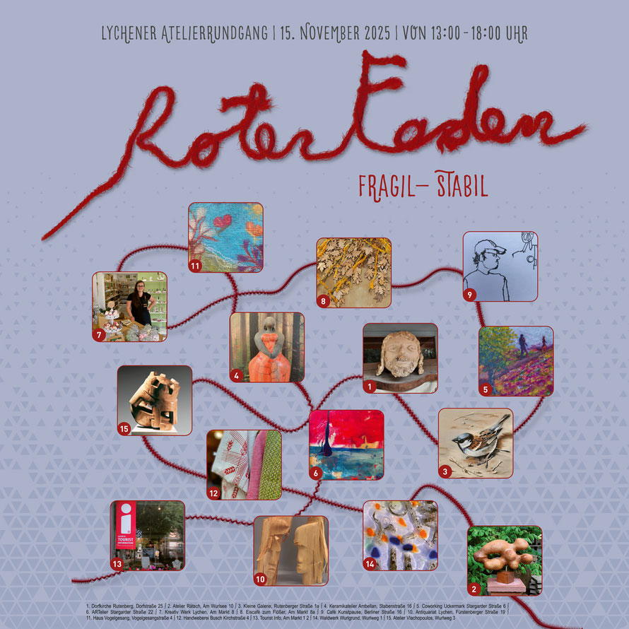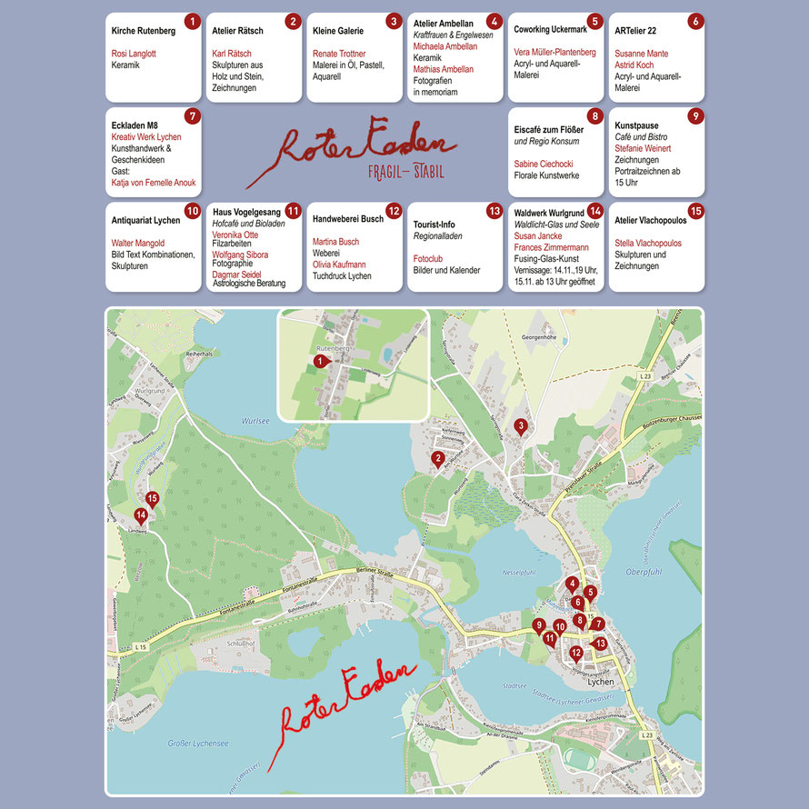 Hier ist sind die Kunst-Stationen des Lychener Atelierrundgangs 2024:
